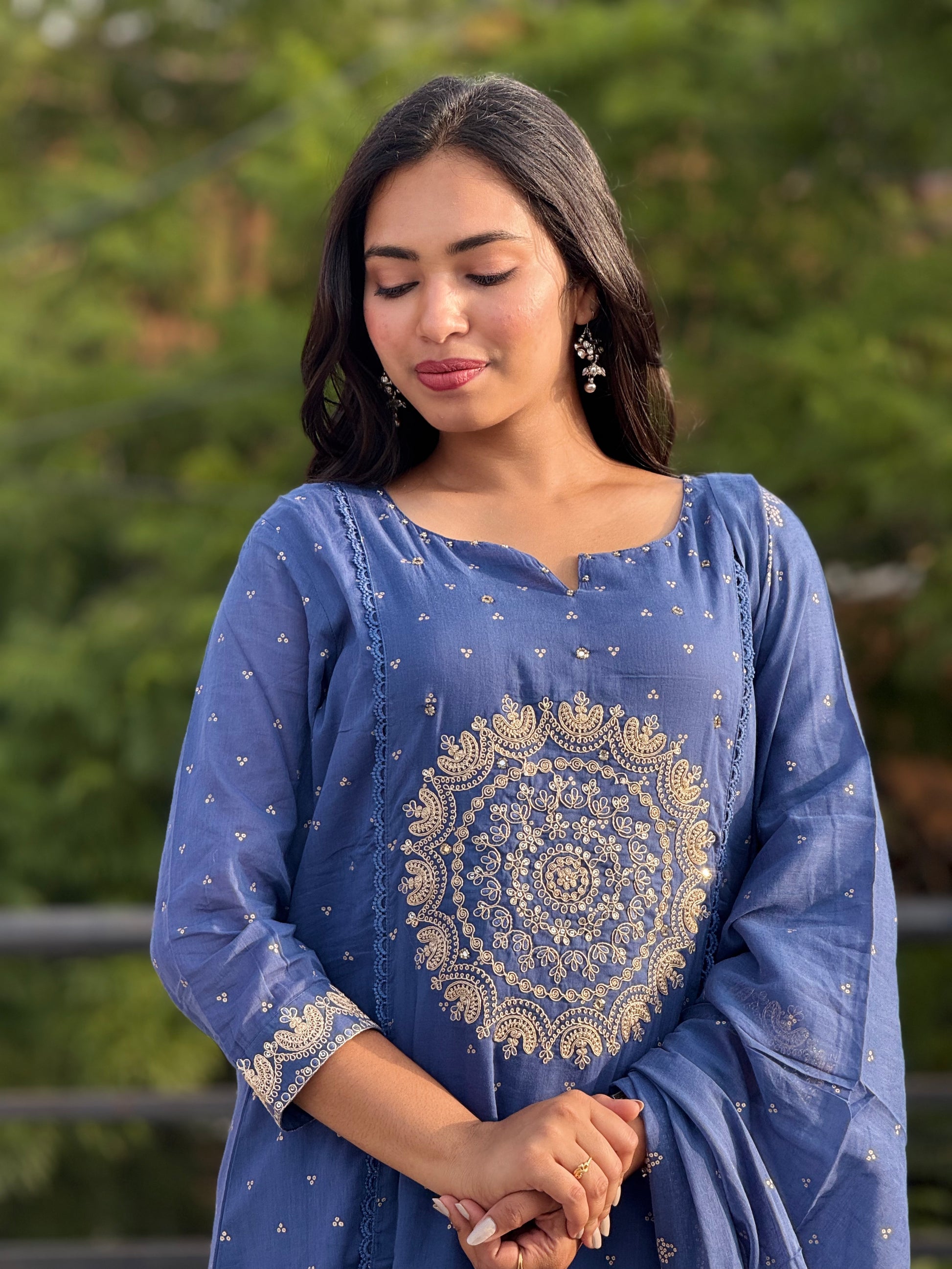 3/4 sleeves with golden embroidery border
