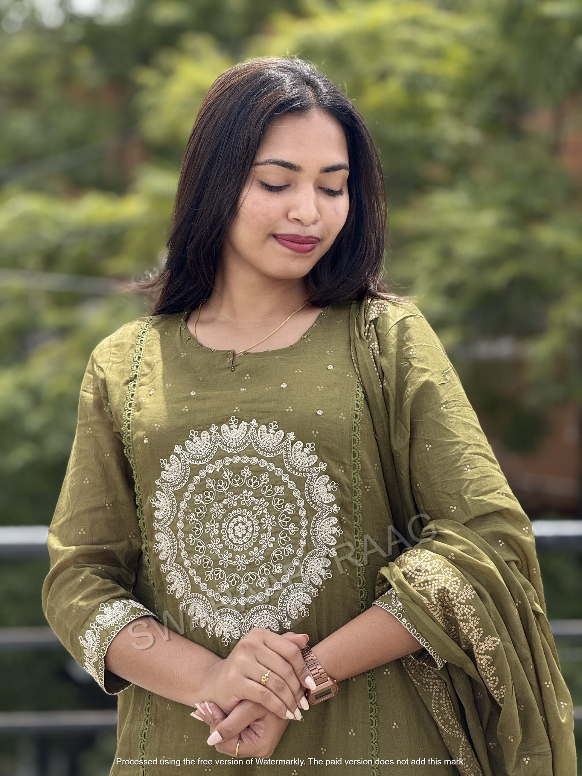3/4 sleeves with golden embroidery border