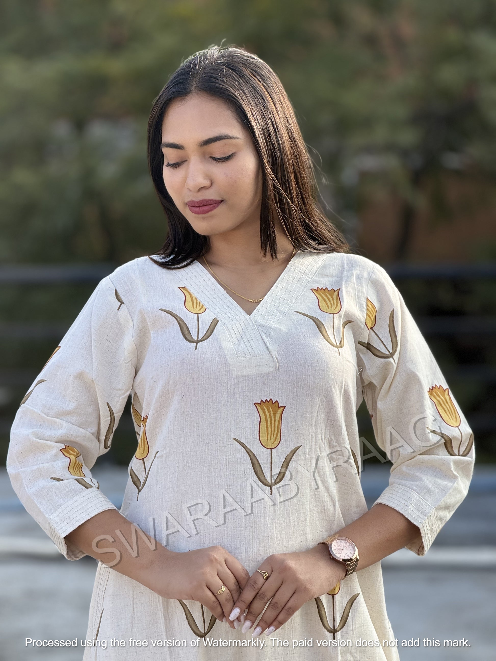 3/4 sleeves with embroidery